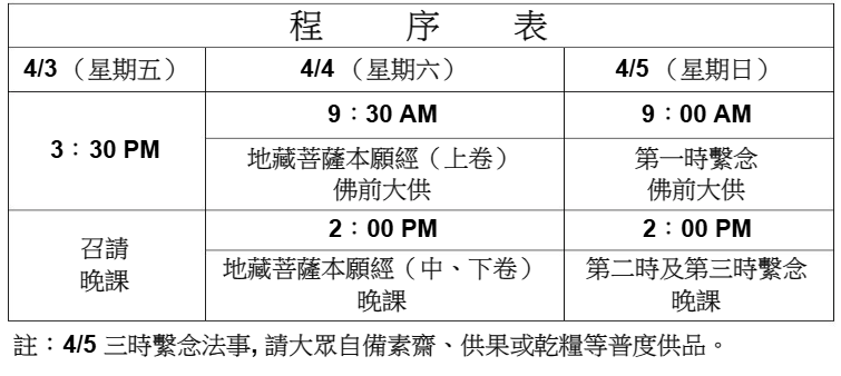早上法會共修,中午備有素齋與大眾隨喜結緣。歡迎大眾踴躍參加,共結法緣,共成佛道。